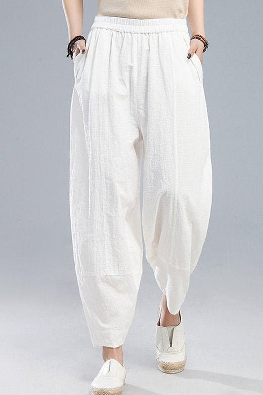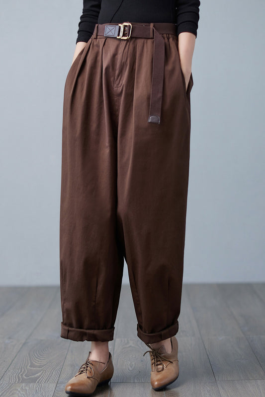 Vintage Inspired Loose Cotton Tapered Pants Women C2511