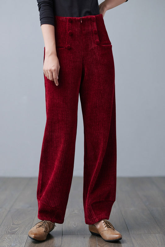 Red Corduroy Pants, High waist Long Corduroy Pants C2547
