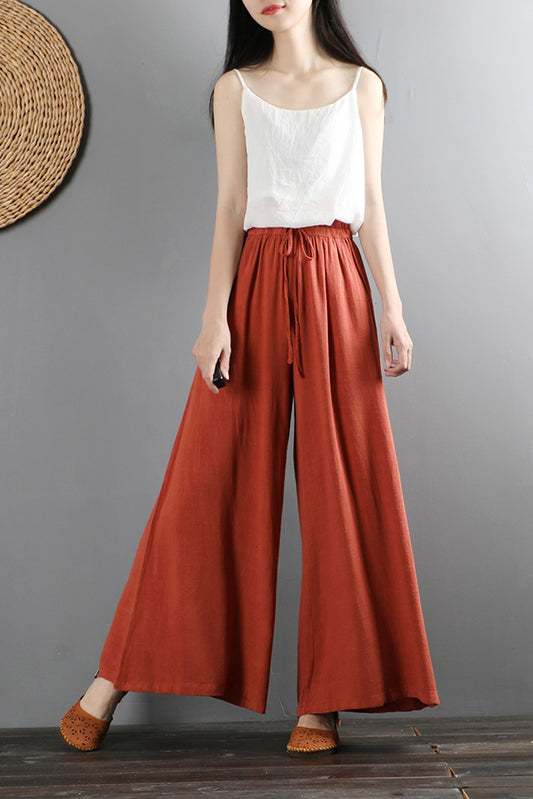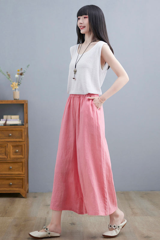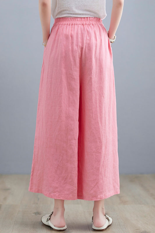 Pink Wide Leg Linen Pants For Women C2264#YY05123