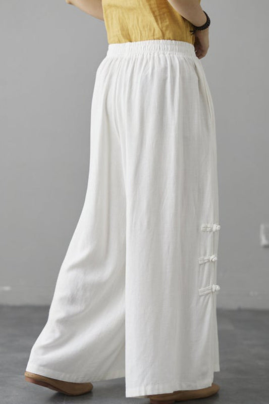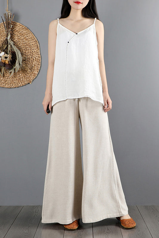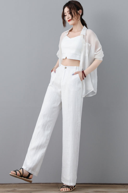 White Wide Leg Linen Pants For Women C2264#CK2100673