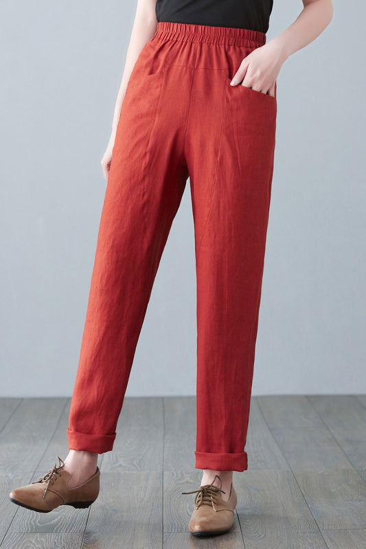Vintage-inspired High Waist Cotton Linen Pants C2877