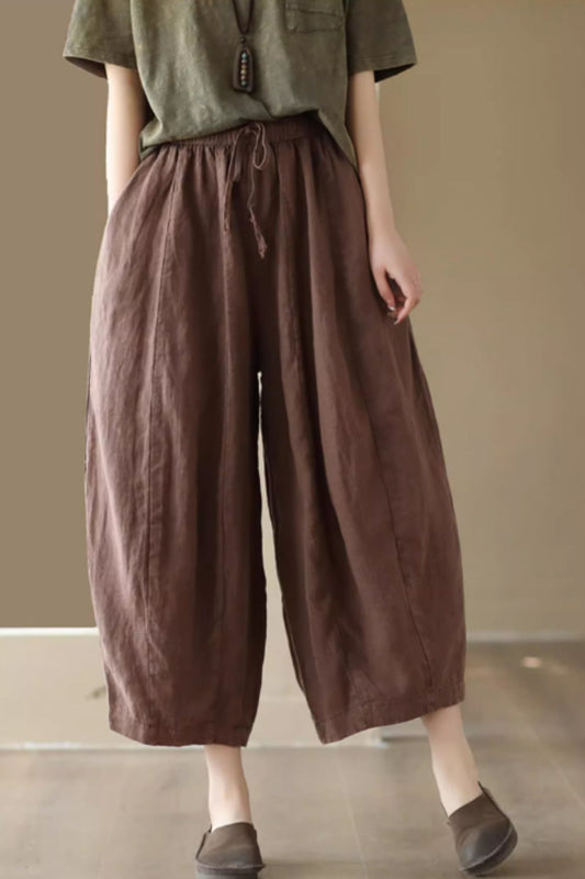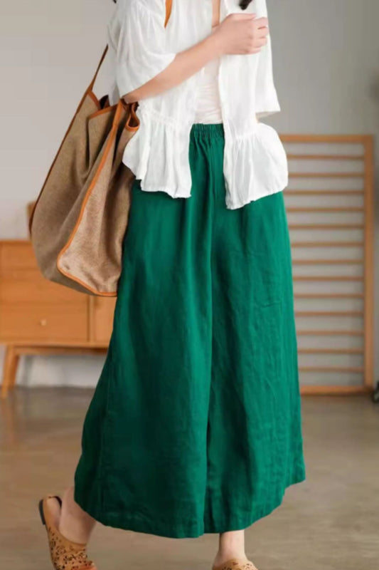 Loose fitting wide leg linen pants women C4439