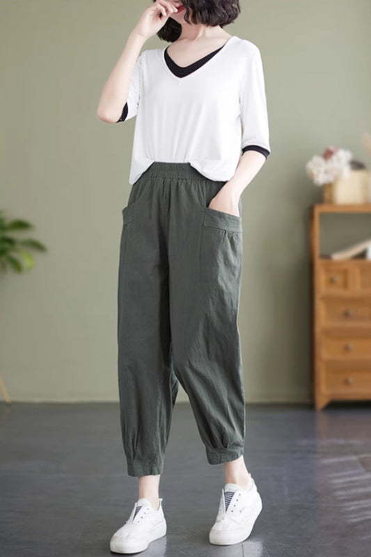 Loose Casual Elastic Waist pants C3968