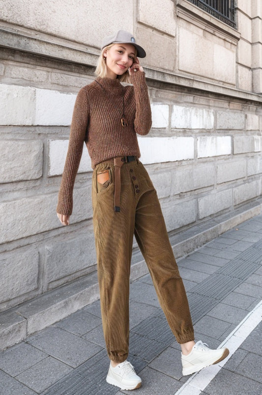 High waist corduroy long pants women TT0124