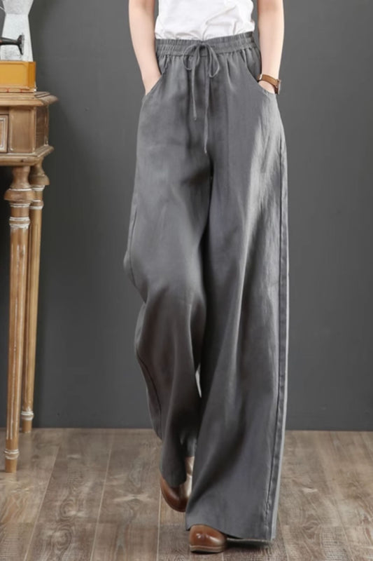Long wide leg linen pants with drawstring waist C4428