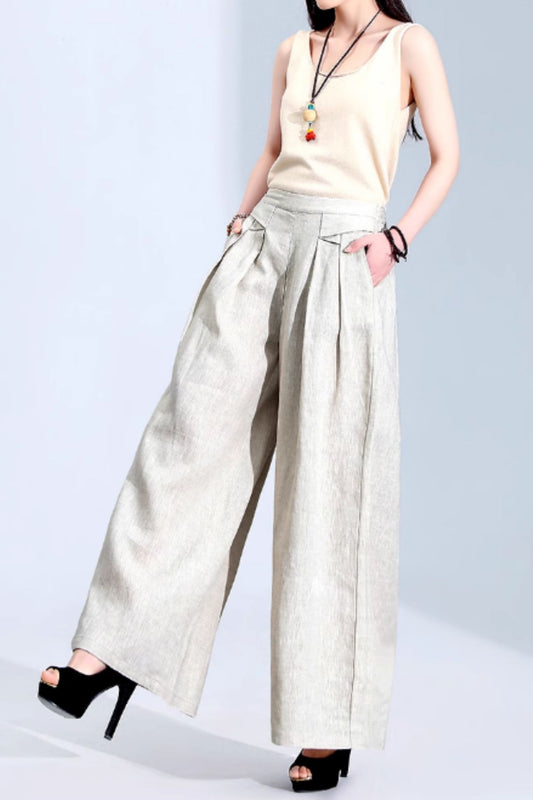 Wide leg long summer linen pants c5069
