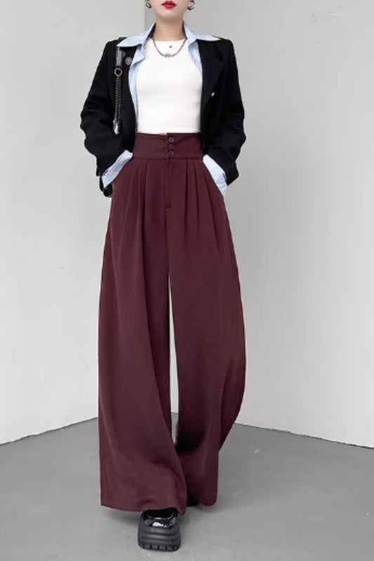 Wide leg long winter wool pants C4663