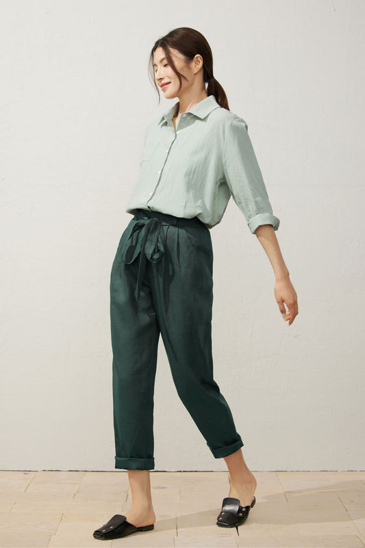 Women's Stylish Green Linen Pants C3935