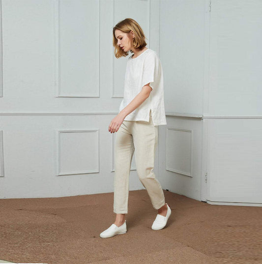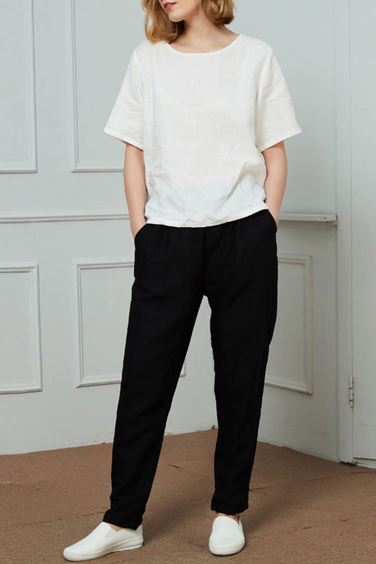 Linen pants, Vintage linen Cropped Trouser Pants, linen Straight Leg pants, Linen Pull-On Pants C1465