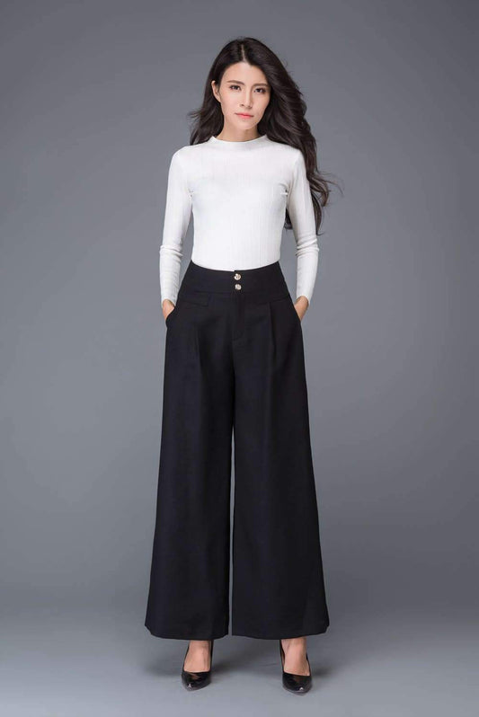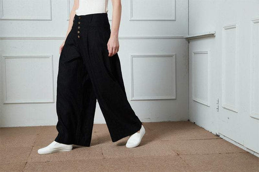 Linen Pants, wide-legged pants, Long linen Pants, Black linen pants, women pants, linen palazzo pants, buttons pants, pockets pants C1400