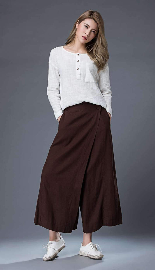 Linen wrap pants, brown wrap pants, linen pants, woman pants, wide leg pants, loose pants, palazzo pants, linen palazzo pants C862