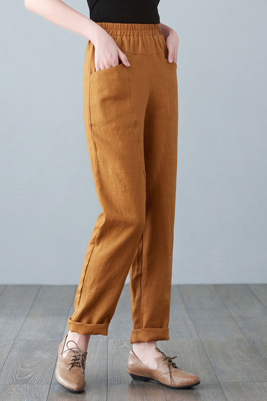 Elastic Waist Women Cotton Linen Casual Pants C2887