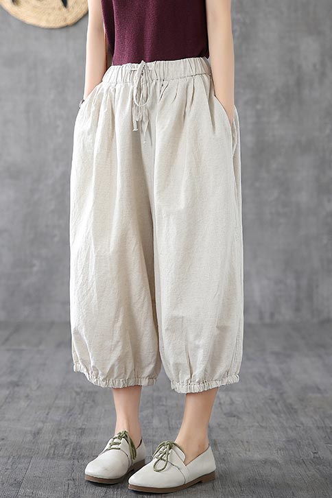 Blue Linen Casual Pants Personality Loose Harem Pants C867