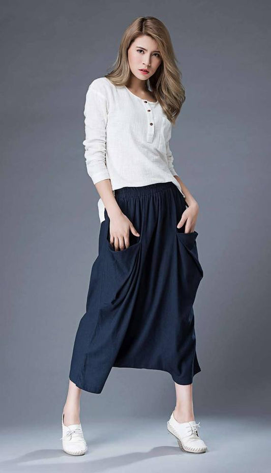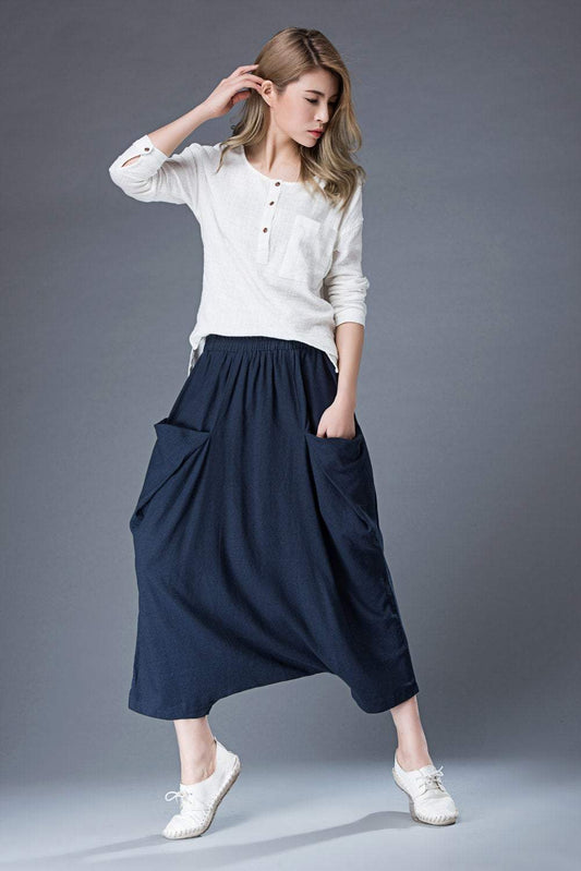 Blue linen pants, linen pants, harem pants, harem pants women, linen harem pants, linen pants women, womens linen pants, navy pants C867