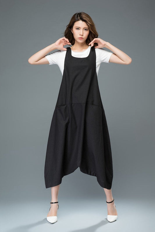 Black linen pants, maxi pants, linen overalls, low drop pants, baggy dungarees, suspender pants, womens pants, salopette, jumpsuit C931