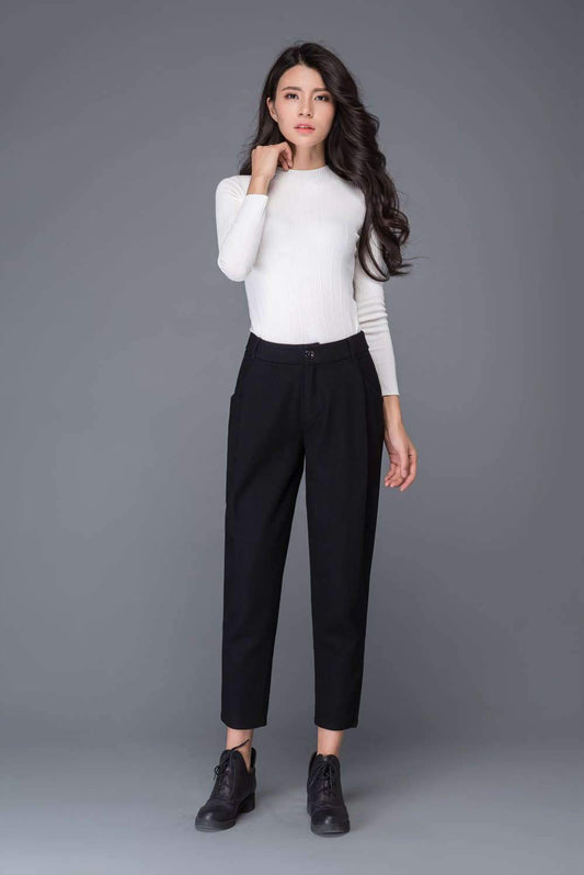 Black pants, warm pants, womens pants, wool pants, formal pants, work pants, office pants, long pants, winter pants, custom pants C1017