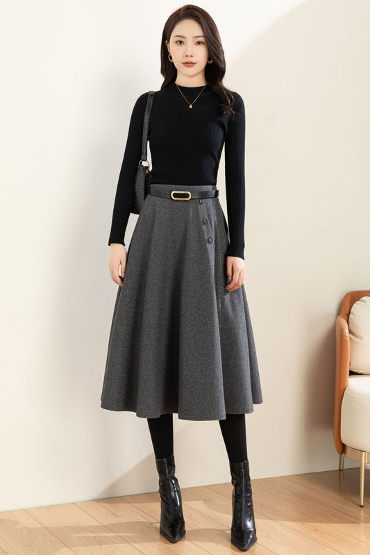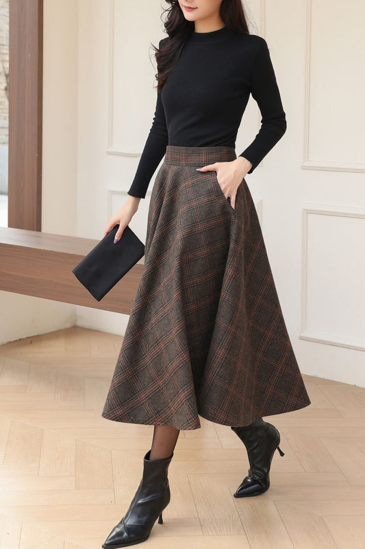 Classic A-Line Wool Plaid Skirt for Autumn Winter C5185