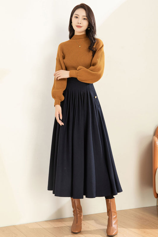 Swing Knee Length Skirt, Wool Skirt Women C4527