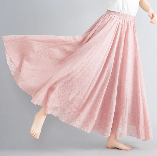 Elastic waist swing linen skirt women C5023-13 (pink)
