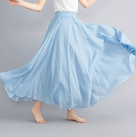 Plus size swing linen skirt women C5023-15 (sky blue)