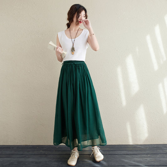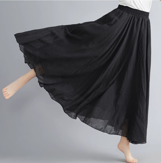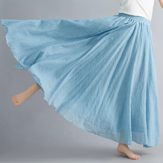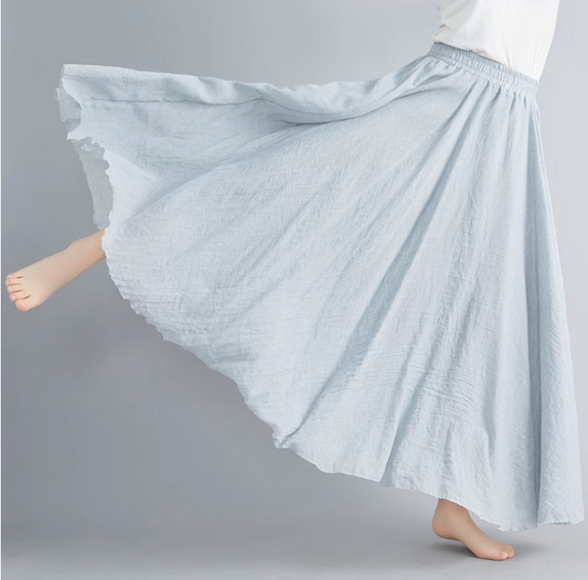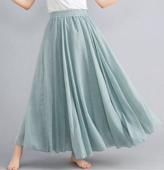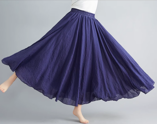Swing long summer linen skirt women C5023-2 (navy blue)