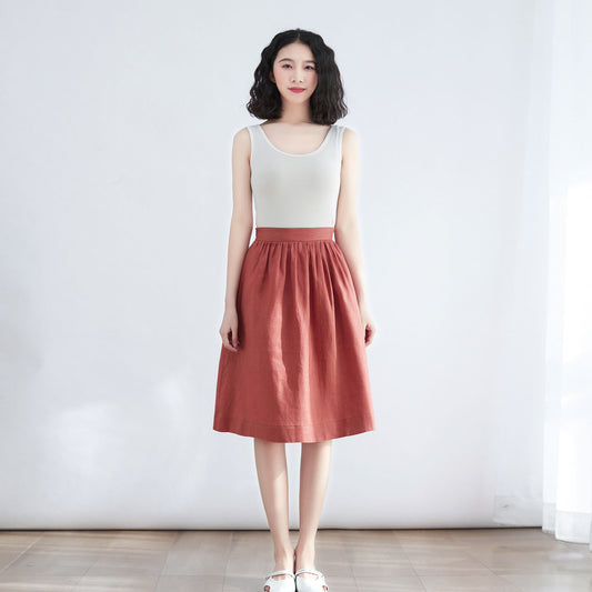 Midi Linen skirt, Summer Skirt with Pockets C2700