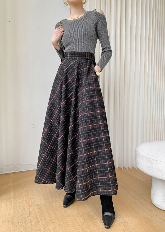 winter plaid long wool skirt with pockets C3762