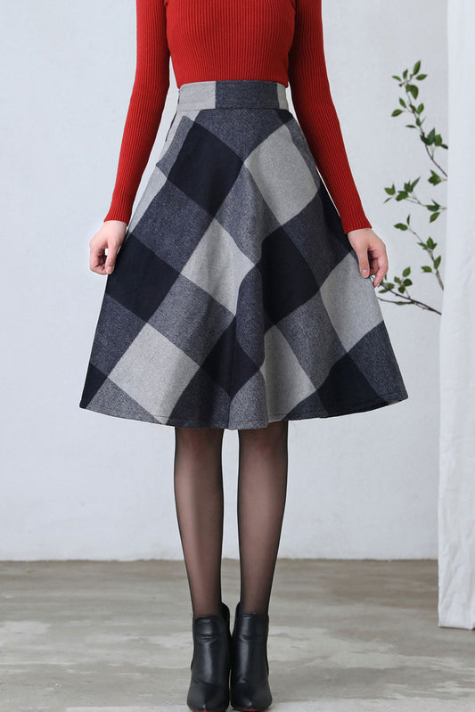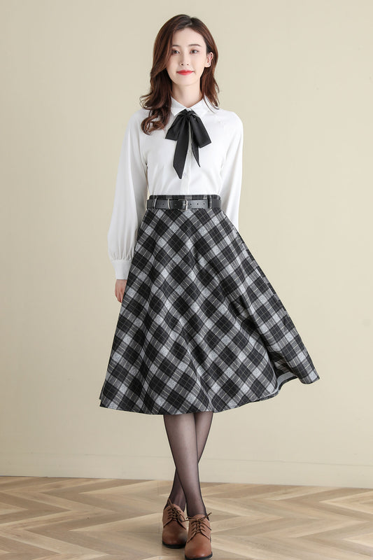 Vintage Inspired Wool Plaid Skirt for Women, Midi Skirt C252201