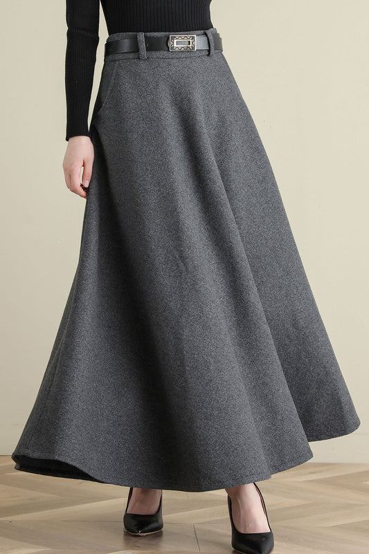 Thick Elastic Waist Maxi Wool Skirt, Swing Skirt, Full Skirt C2515
