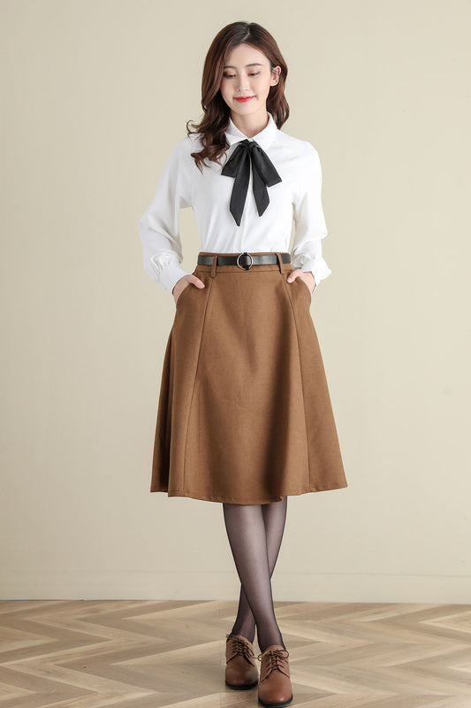 Retro Camel Button Front wool skirt, Wool Midi Skirt C252001