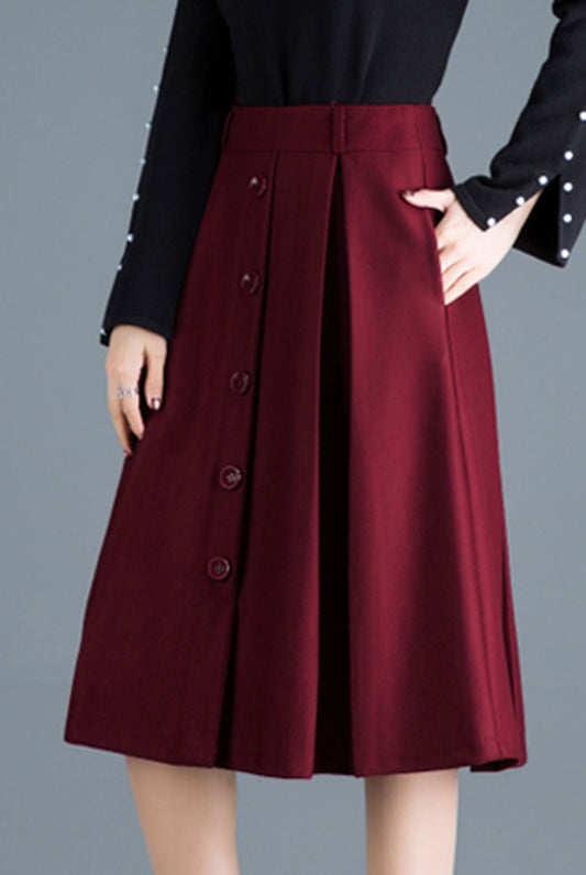 Winter Wool Midi Length High Waist A Line Skirt C2519