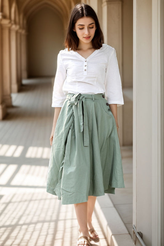 Long Linen Skirt in green C288