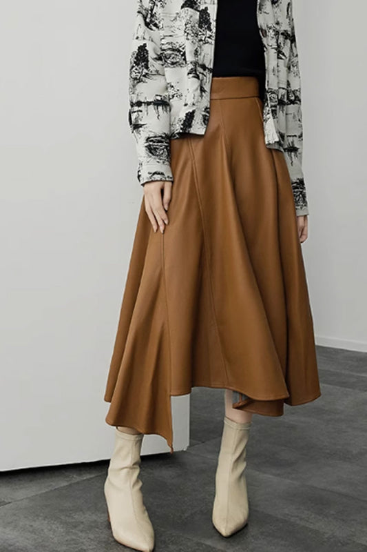 Linen Asymmetrical Elastic Waist Skirt C2817 #CK2201368