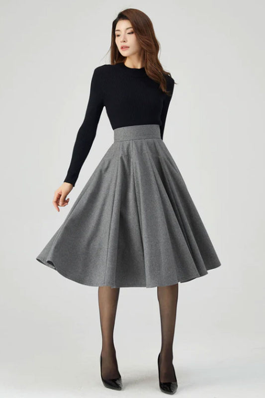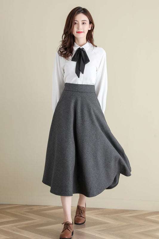 Grey Midi Wool Skirt, A Line Wool Skirt, High Waist wool Skirt C252101