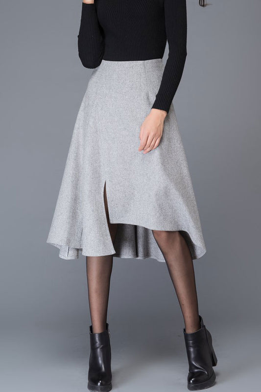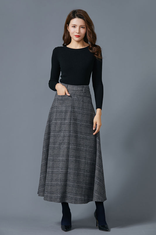 Plaid grey fashion women's handmade skirt skirt with pockets warm wool skirt C1608