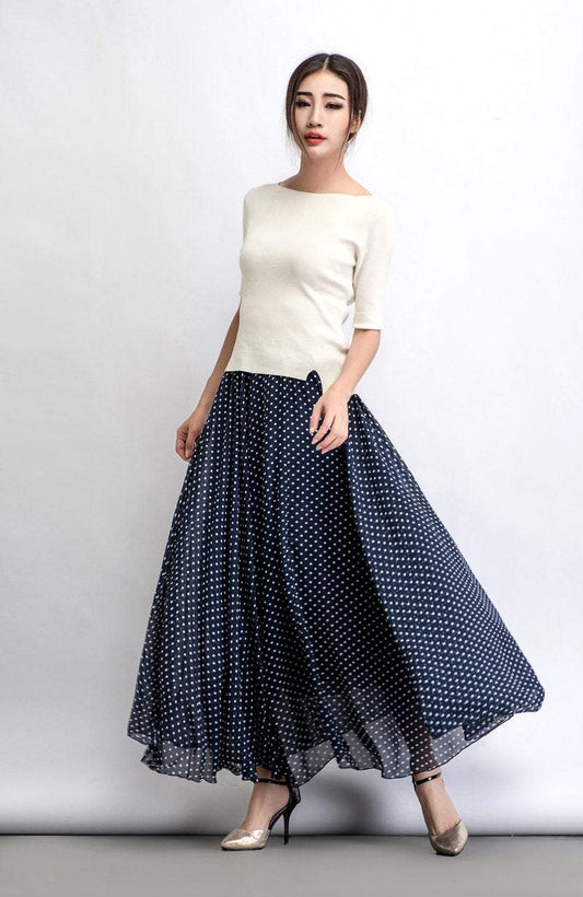 Chiffon skirt, polka dot maxi skirt, floaty skirt, long skirt, wedding skirt, summer skirt, navy blue skirt, sheer skirt, swing skirt C475