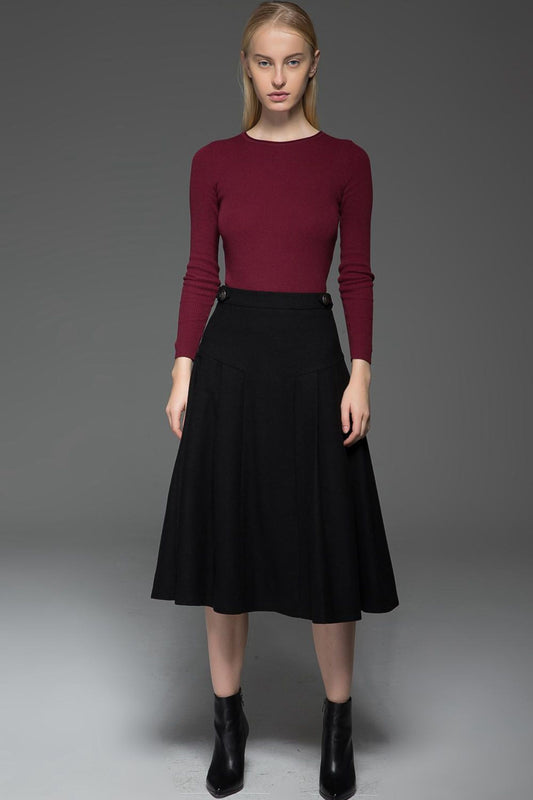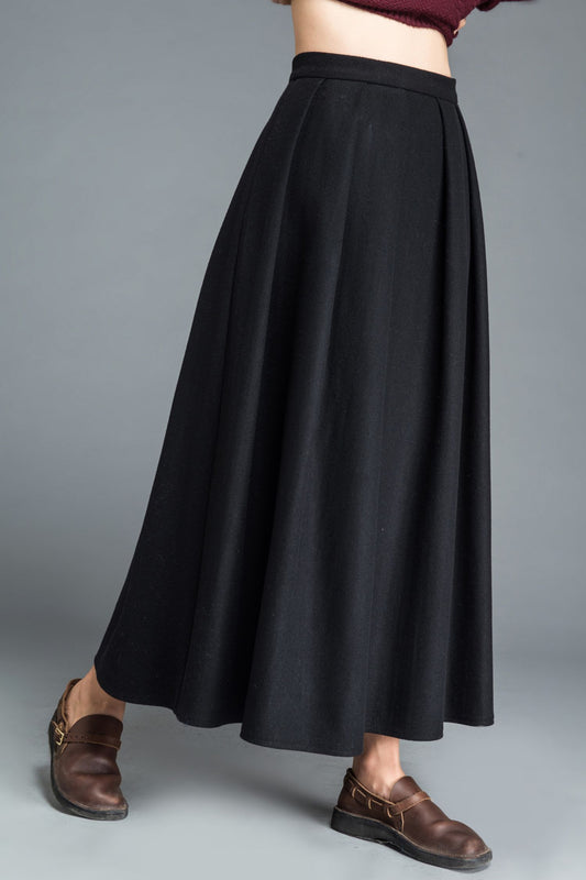 Fit and flare black long wool skirt C1208