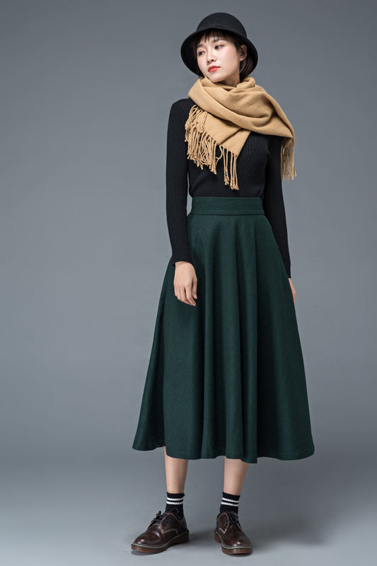 Green winter long wool skirt for women C1197