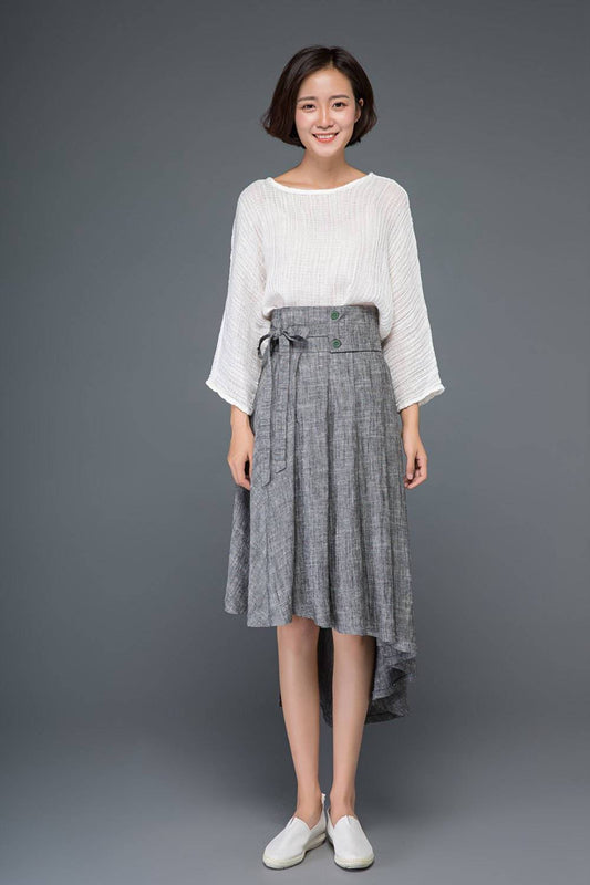 Gray linen skirt, linen womens skirt, summer linen skirt, midi skirt, asymmetrical skirt, bow skirt, pleated skirt, flare skirt C1159