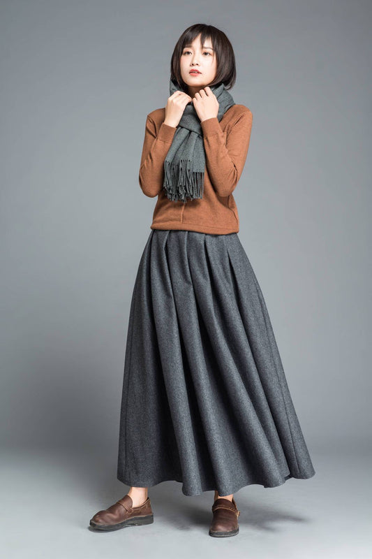 Gray skirt, winter skirt, long skirt, pleated skirt, womens skirts, wool skirt, flare skirt, swing skirt, skirt with pockets C1205
