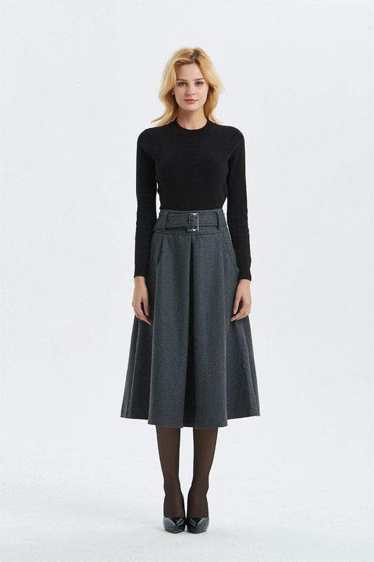 Gray skirt, Winter warm wool skirt - womens skirts with belt, midi skirt & pleated skirt, Gray wool skirt - skirt with pockets C1291