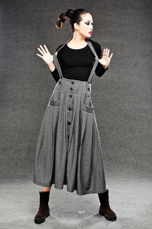button front wool suspender skirt C048