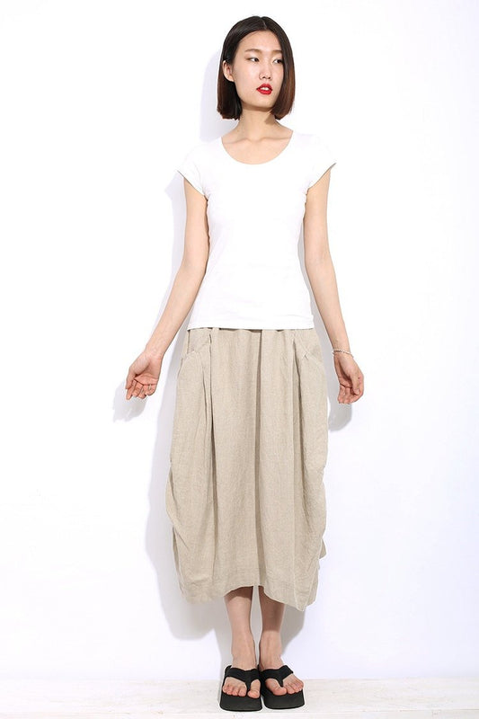 Casual Linen Skirt, Beige linen skirt, midi womens skirt, Cream Beige Mid-Length Woman's Skirt with Drawstring Waist Plus Size Clothing C321