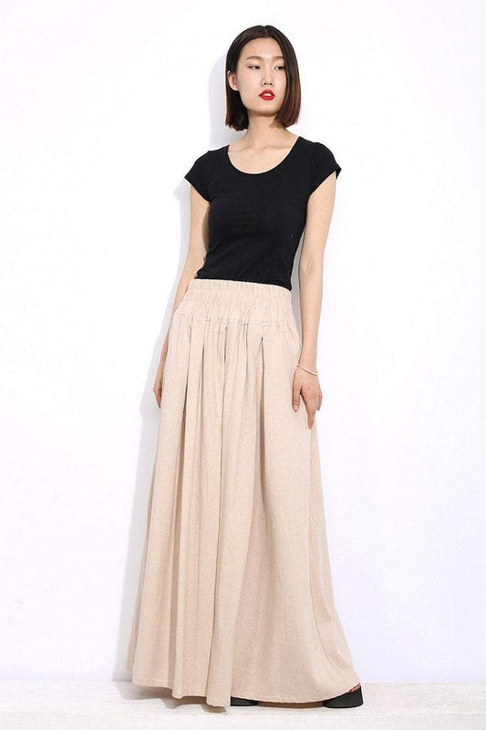 Cream Maxi Skirt - Linen Long Pleated Simple Casual Woman's Skirt with Elasticated Waist Plus Sizes (C325)