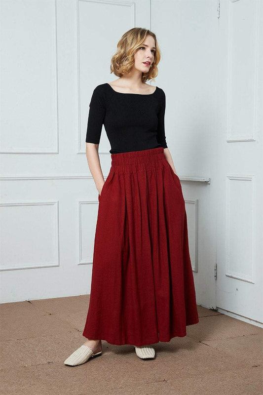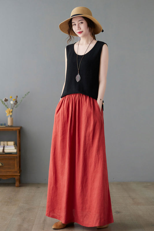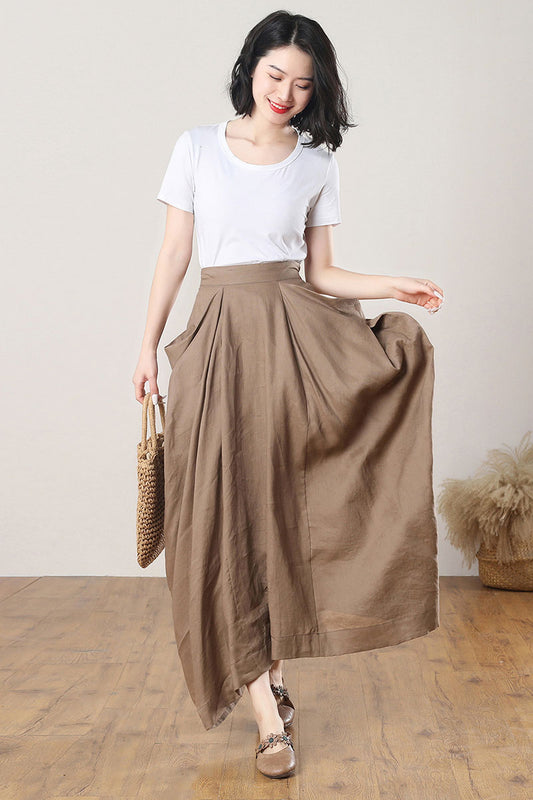 high wasit linen maxi skirt C1396