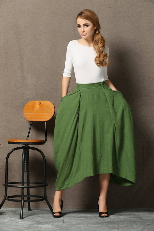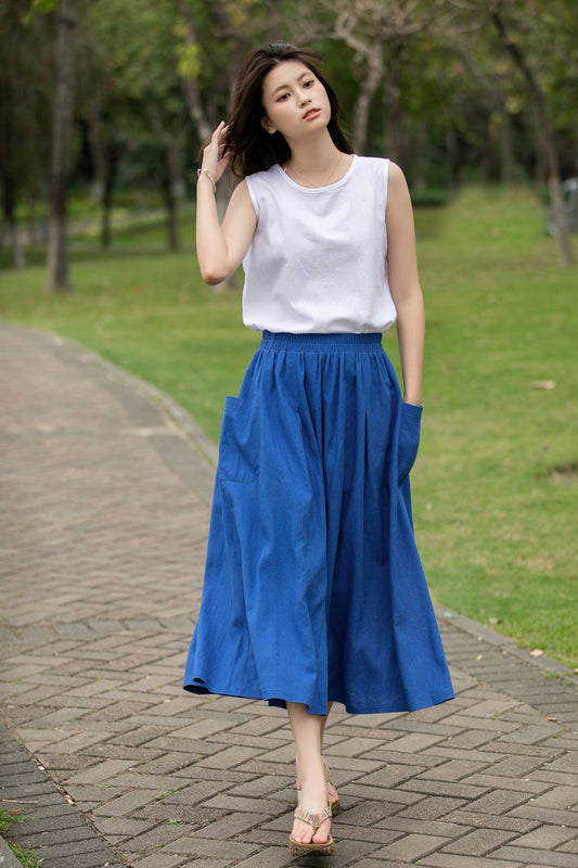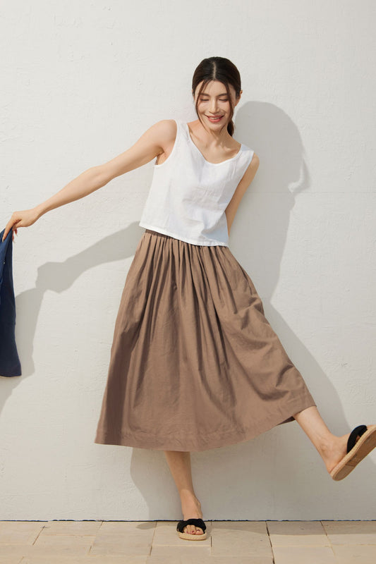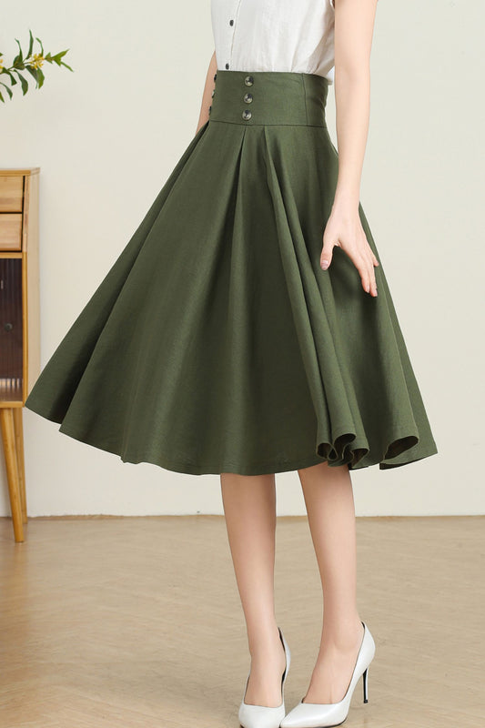Linen Midi women A-line skirt C4017