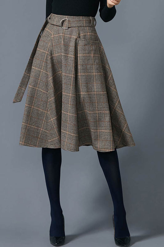 Midi Plaid wool skirt C1607#