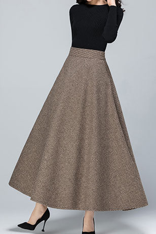 Button Wool Skirt, Brown Skirt for Women C3787