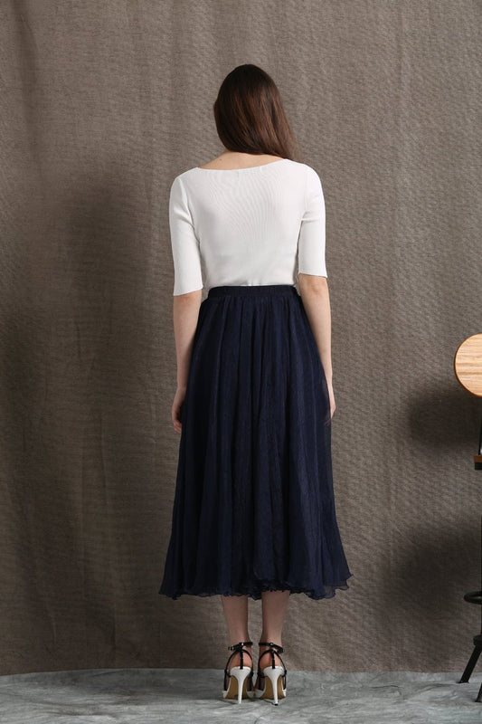 Party skirt, chiffon skirt, long skirt, navy blue skirt, womens skirts, elegant skirt, flare skirt, swing skirt, pleated skirt C428