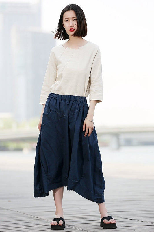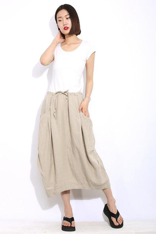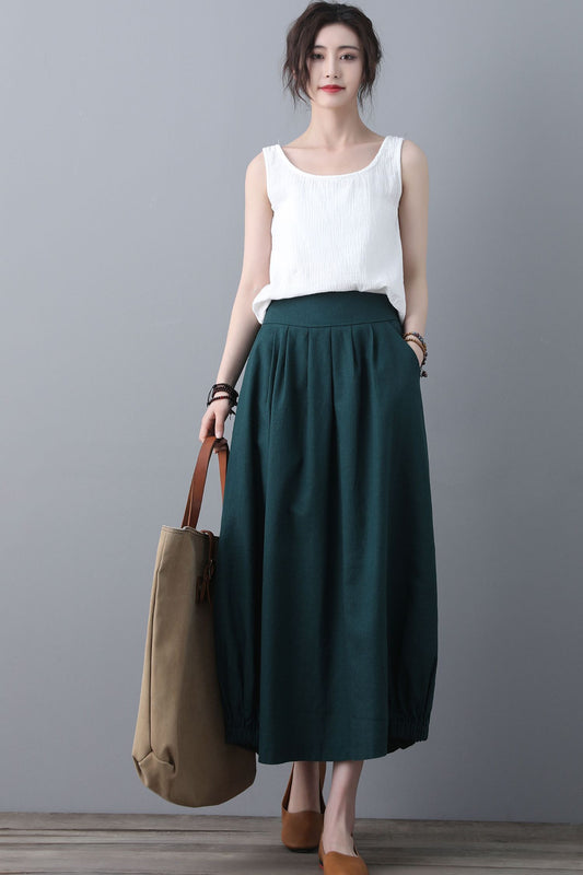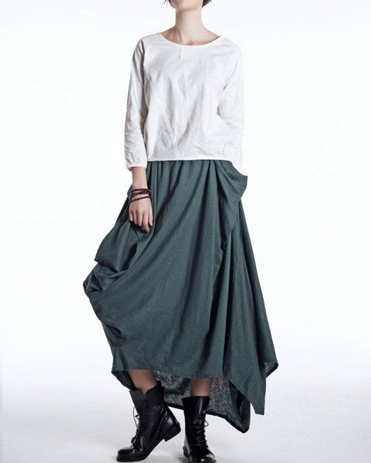 Green Linen Skirt, long linen skirt, linen skirt, Maxi Asymmetrical Hemline with Pockets All-Seasons Skirt, asymmetrical linen skirt C524